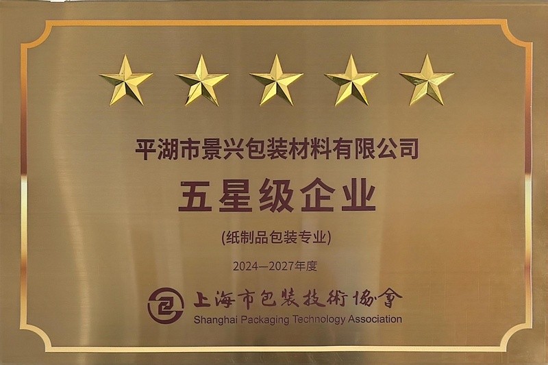 喜报!太阳集团官网全资子公司平湖景包被上海市包装技术协会授予纸制品包装专业“五星级企业”荣誉称号