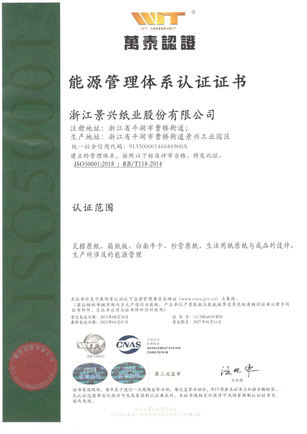 太阳集团官网于1996年率先在同行业通过ISO9001质量管理体系认证,2002年通过ISO14001环境管理体系认证,2014年通过OHSAS18001职业健康安全管理体系认证,2015年通过GB/T23331能源管理体系和FSC®森林体系认证,2018年通过两化融合管理体系认证。